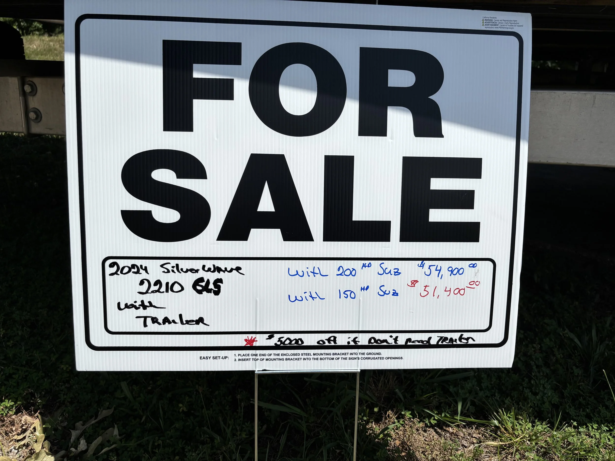 Boat Sales SOLD - 2024 Silverwave 2410 JS Tri-toon with Trailer $0.00 Sold out 2008 Sunset Bay 250 Cruz Bronze Pontoon with Haul-right Trailer $8,500.00 2024 Silverwave 2210 GLS Tri-toon with Aluminum Trailer from $51,400.00